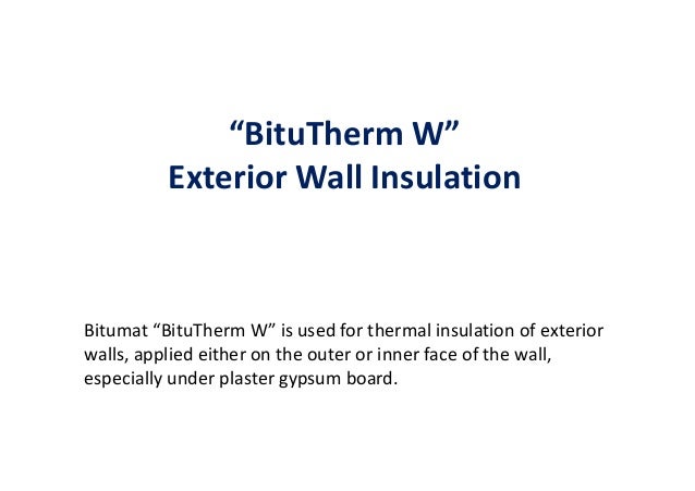 - 13. “BituTherm W” Exterior Wall Insulation Bitumat “BituTherm W” is used for thermal insulation of exterior walls, applied either on the outer or inner face of the wall, especially under plaster gypsum board.